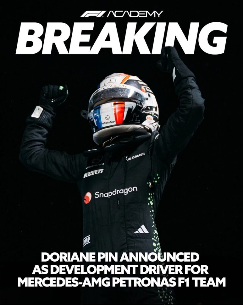 Doriane Pin, campeona de 2025, se convierte oficialmente en piloto de desarrollo con Mercedes-AMG Petronas F1.